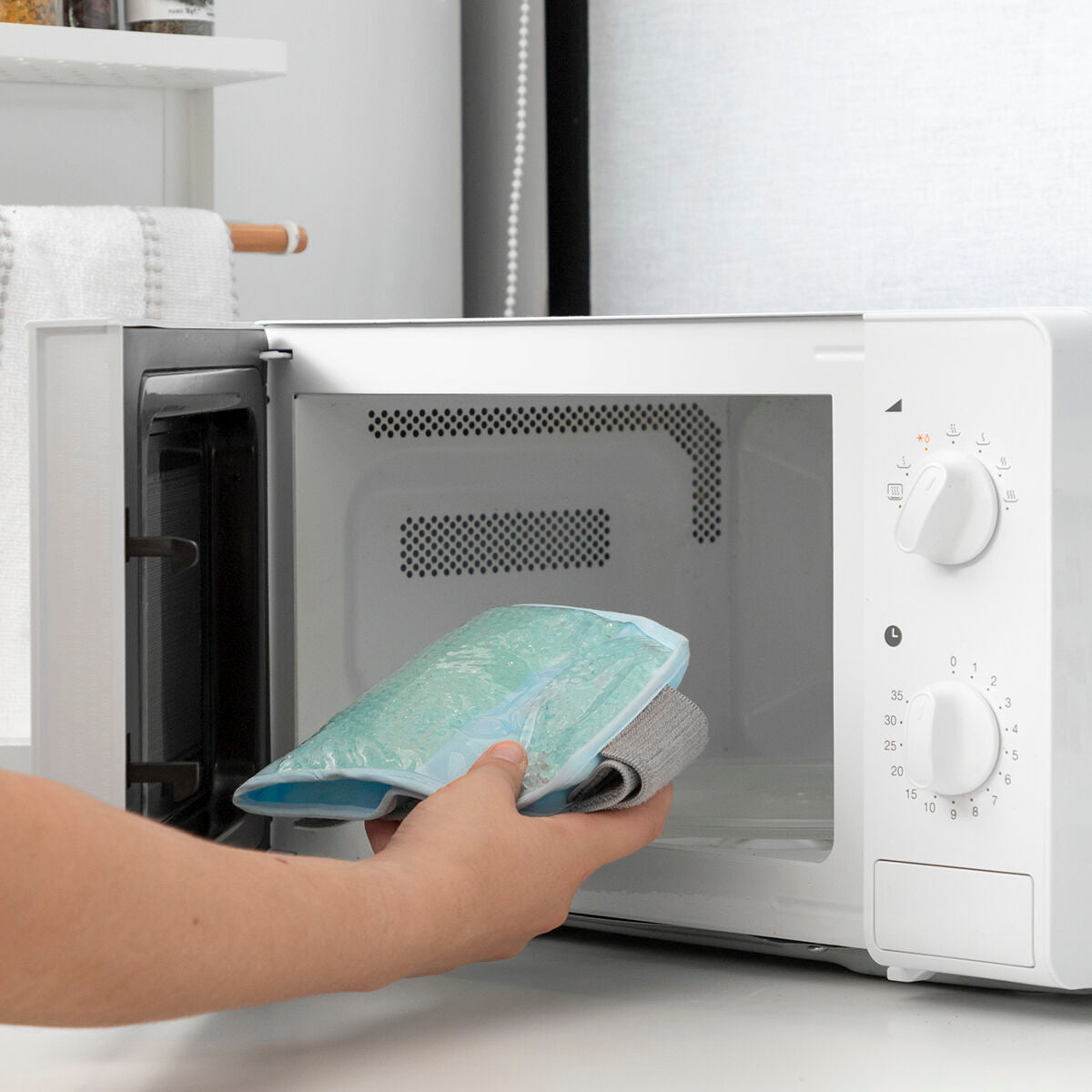 wird es in den Kühlschrank oder in das Gefrierfach gelegt, für eine wärmende Wirkung