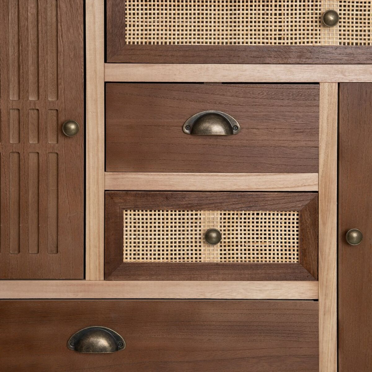 Anrichte SASHA 100 x 33 x 80 cm natürlich Holz Creme Rattan