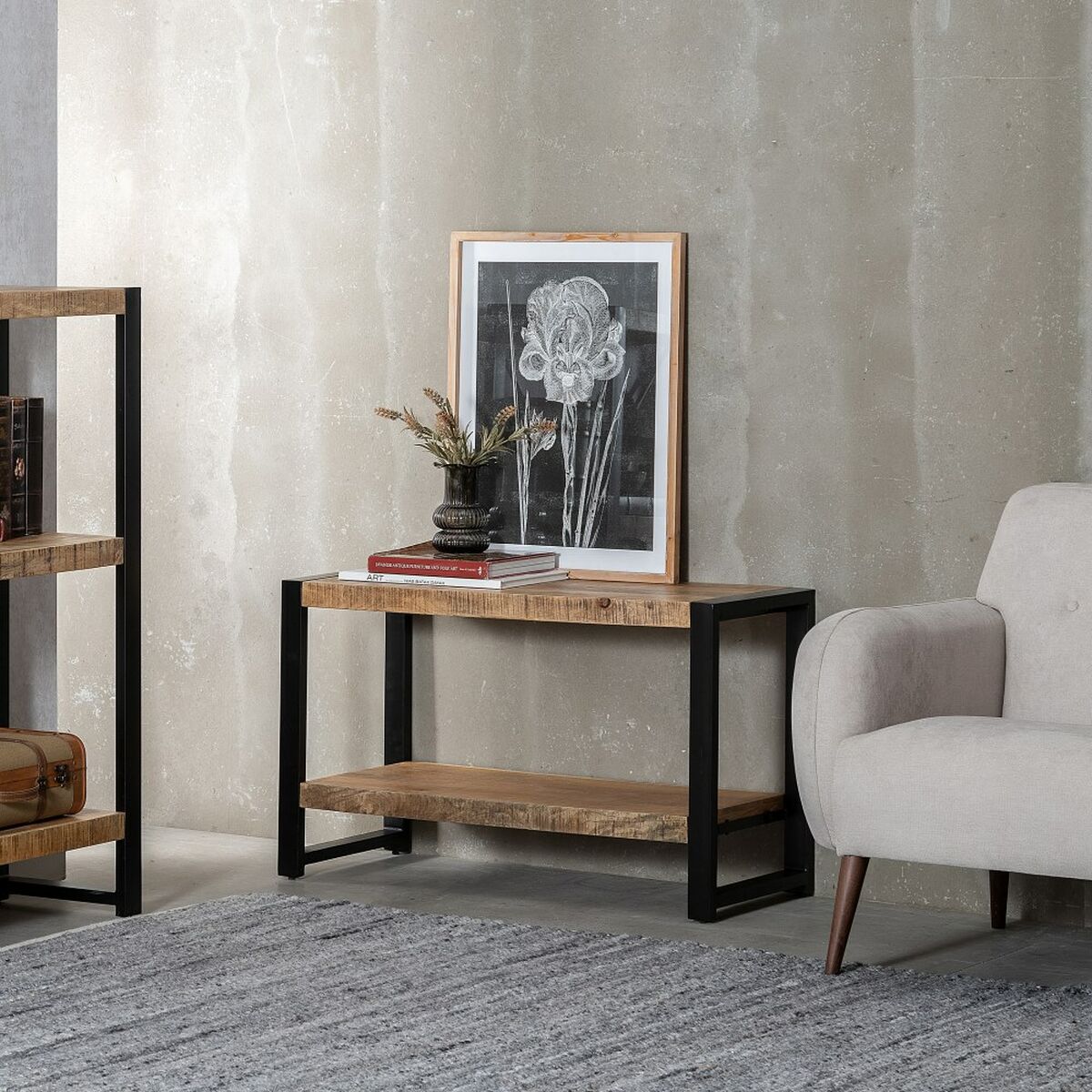 Beistelltisch MANGO 100 x 40 x 60 cm natürlich Schwarz Holz Eisen