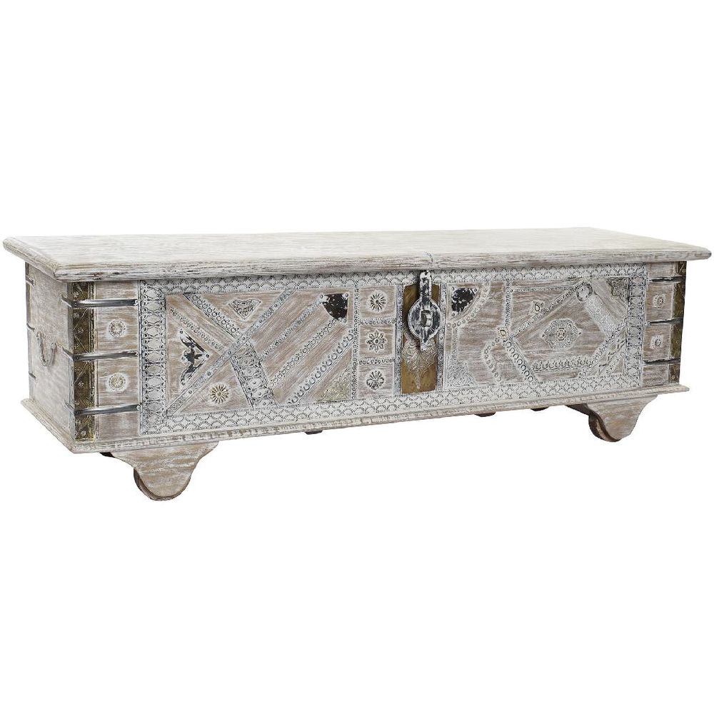 Truhe DKD Home Decor Paulonia-Holz Weiß Messing (146 x 40 x 45 cm)