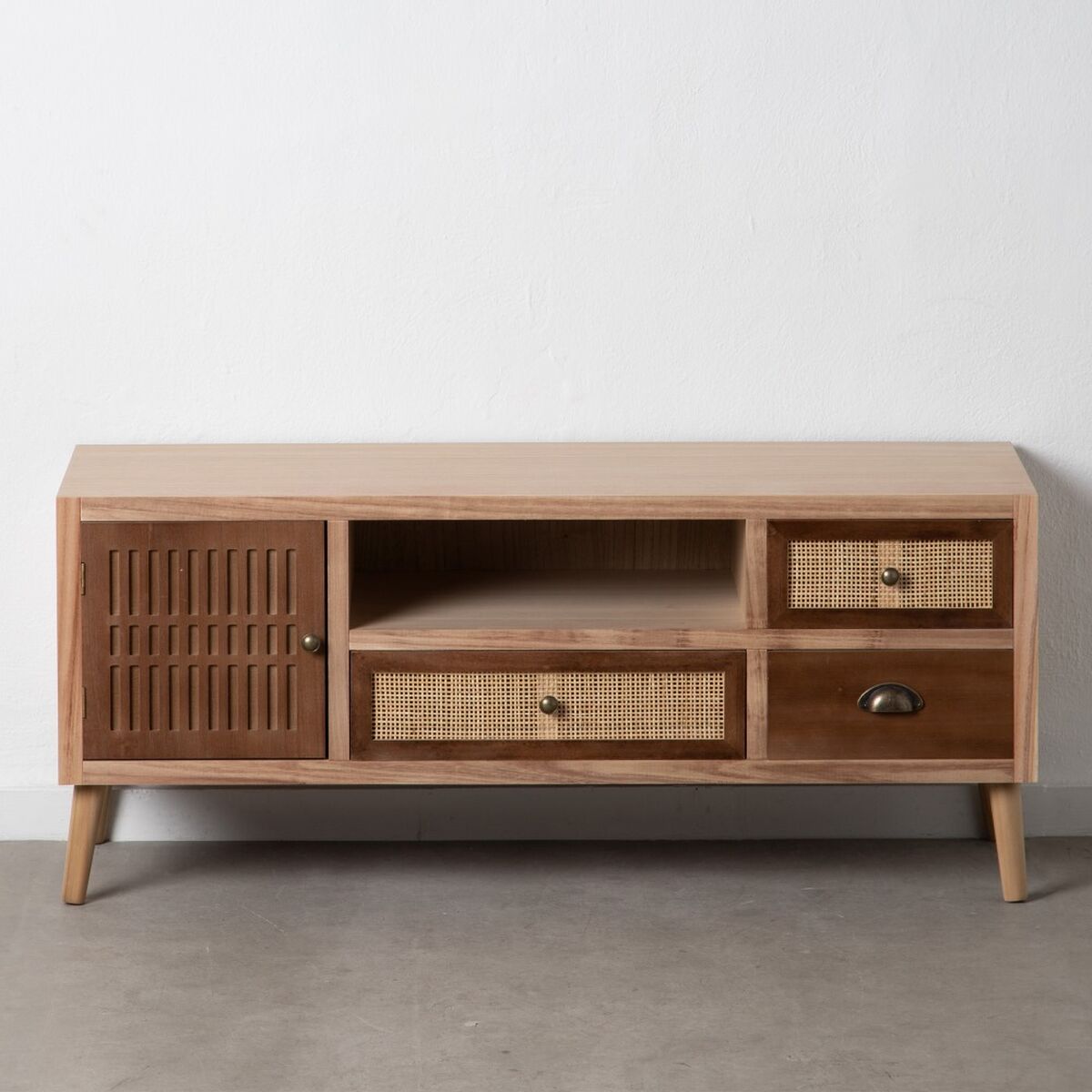 TV-Möbel SASHA natürlich Holz Creme Rattan