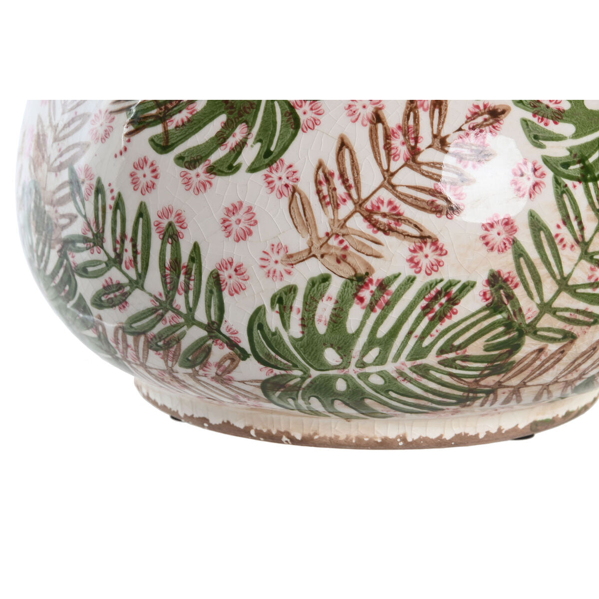 Vase DKD Home Decor 21 x 20 x 16 cm Braun Weiß grün Steingut Tropical Pflanzenblatt