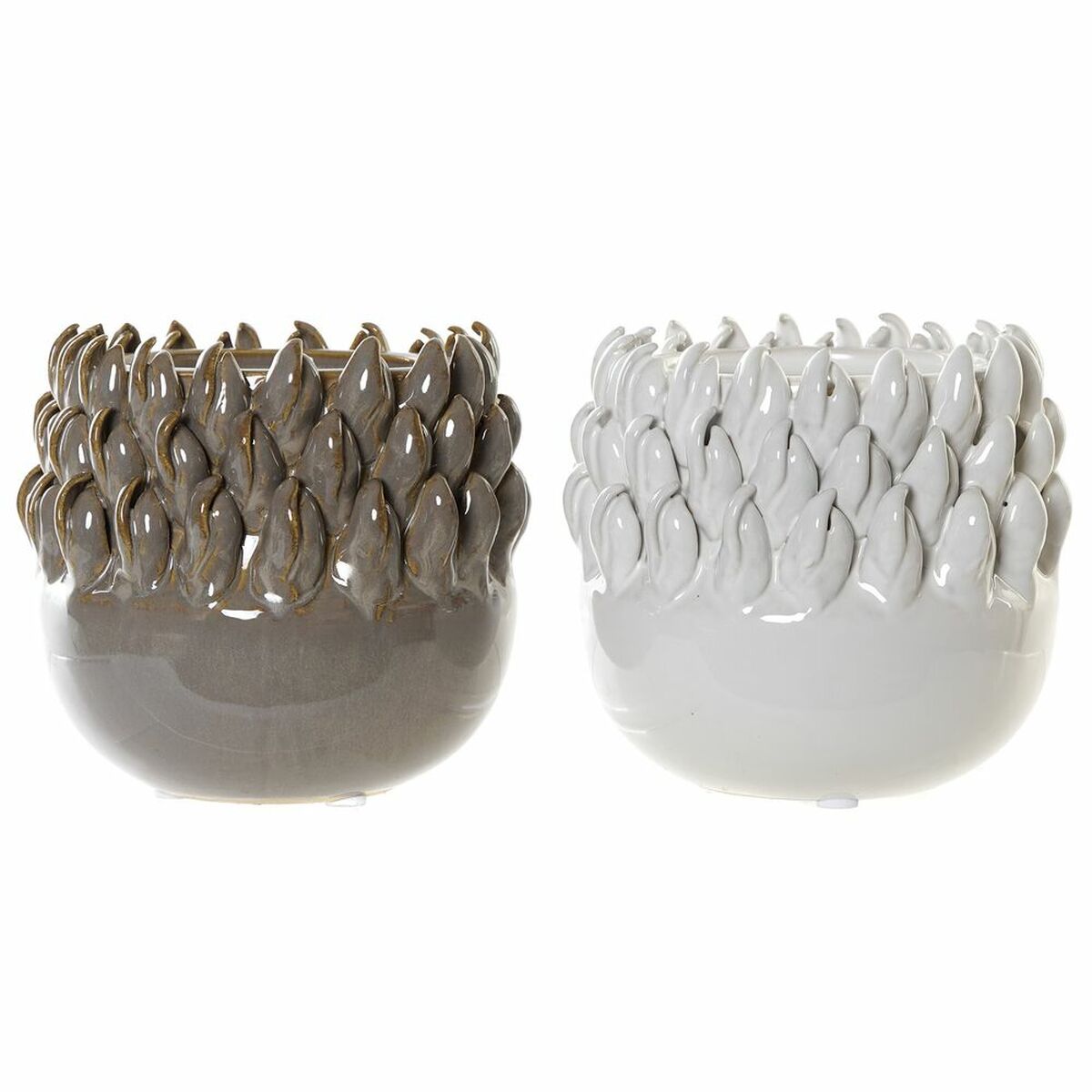 Vase DKD Home Decor Grau Weiß Steingut Moderne 14 x 14 x 13 cm (2 Stück)