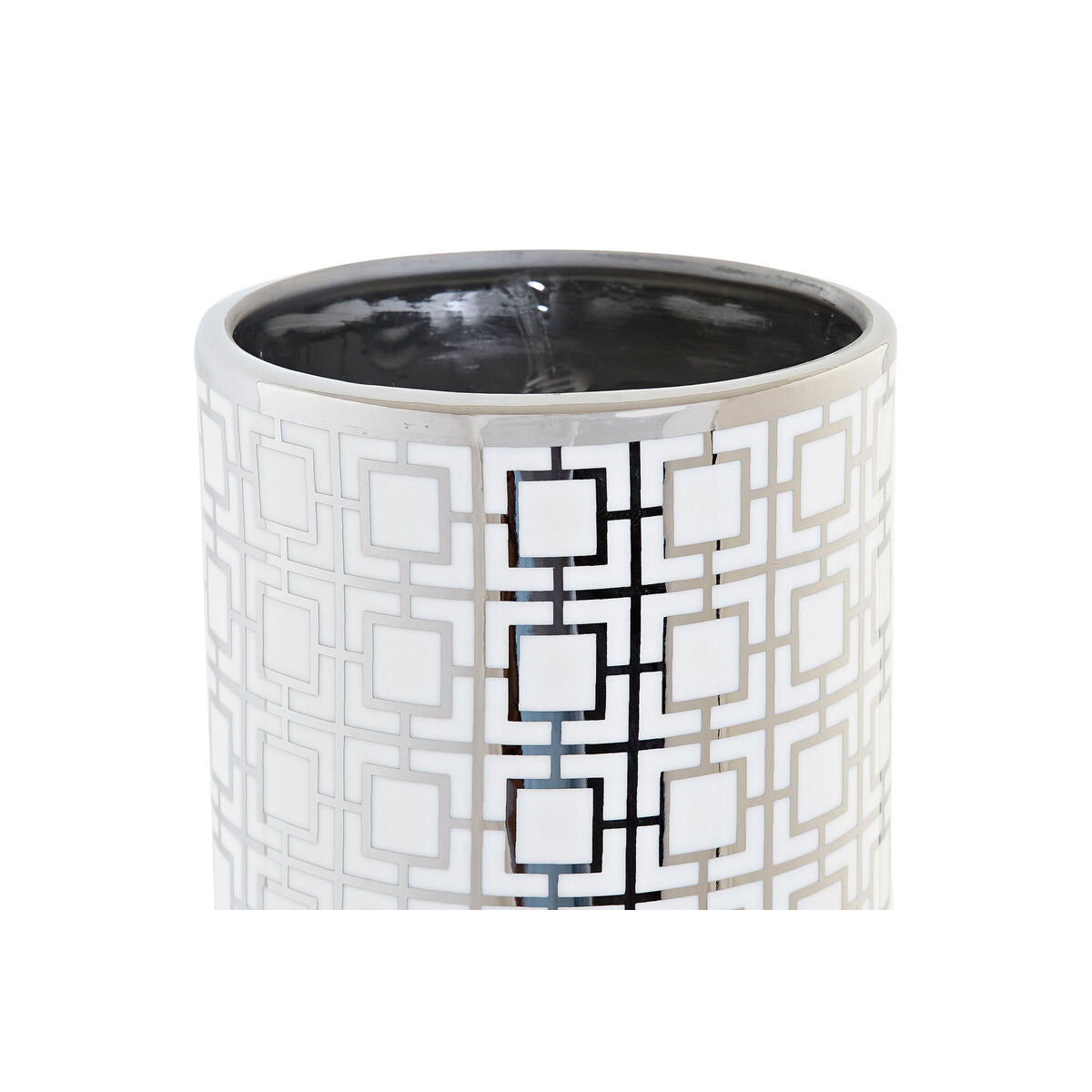 Vase DKD Home Decor Porzellan Silberfarben Weiß Orientalisch Geometrisch 13 x 13 x 36 cm
